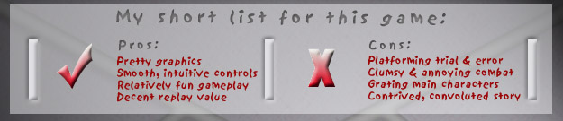 Pros & Cons: The overall graphics and framerate may not be the most technically impressive, and the characters' art direction is jarringly unlikable (they look like life-sized plastic dolls), but load times are brief, and the temple environments are stunningly grand in scale, with detailed textures, well-used moody lighting and fluid water effects; Lara has relatively smooth animations (including the subtle use of motion blur when she jumps around), and things like foliage bend and sway when she runs through it. The controls are moderately smooth, intuitive and easy to use, with a great time-saving sprint button feature, which can be made to speed up Lara's otherwise painfully slow running, swimming and ledge shimmying; the temples and their puzzles are well designed and relatively fun; and Lara's multi-purpose grappling hook can do anything from pull down the many platform and puzzle objects or suspend Lara from walls, which then allows her to climb, rappel or swing from them--it's handy, fun to use and implemented quite well. However, on the negative side, many animation transitions are very awkward, and the way Lara turns while running has a loose, unnatural feel, which puts a damper on navigation. This carries into platforming, and because of the sometimes unresponsive animation, Lara will often jump in the opposite direction you wished her to, resulting in her falling to her doom again and again. Add this, and the fact that many of the platforming portions are unnecessarily vague when it comes to knowing where to jump next, and you've got plenty of needless and frustrating trail and error. While not broken or entirely unplayable, the combat system is moderately clumsy and annoying; it takes over a dozen shots--two dozen kicks--just to dispatch human enemies (who aren't even equipped with flak jackets), and although the enemy can (and will) take cover behind objects, you're forced to stay out in the open and repeatedly jump around to (unsucessfully) dodge their constant fire--it is puzzling, they could have added some sort of cover system. Wildlife encounters don't fare any better, and other than finding something to stand on (so that they can't get to you) while you either pump dozens of bullets into them or toss a grenade (which will thankfully kill in one hit), there's no real strategy involved. With this, the outdated healthpack system (instead of a much needed regenerative system) and the clumsy wall catching camera, combat isn't really fun--it should be an intergral part of gameplay, not an objective blocking nuisance. But, the worst offender (in my opinion) is the game's story; Lara talks in a somewhat grating (and a bit haughty) English accent, stating random trivia (to herself) about where she is and why, and the said subject matter tends to be contrived and quite pointless. Because of this and the equally uncompelling side-characters, the overall story is convoluted and honestly uninteresting--at least to non-Lara fans. However, Tomb Raider fans have always put up with these nagging issues--and probably still will; casual fans will find the hint system and extensive difficulty select useful (allowing you to adjust Lara's and enemy health levels, ammo levels, etc.); and after beating it, you can go through previous levels to collect all the treasures in order to unlock concept art and storyboards. Otherwise, if you like this genre and have a PS3 (and unless you're a huge Lara fan), get Uncharted instead. |