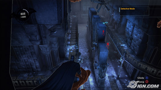 After you're lured, duped and trapped in Arkham Asylum, you'll begin your mission to take it back from Joker, and the base gameplay consists of using your combat moves and stealth in conjunction with your gadgets, to navigate Arkham Island's exterior and its five main complexes. You'll first use Detective Mode to spot enemies through walls and find exits, like the many grates, which you will then pry off and crawl through, to bypass blockages. You'll proceed with "Predator" stealth mode (when not, you'll brawl groups of surrounding enemies—earn points for each defeated, resulting in a level up) to flank and pick off armed henchmen one by one with the help of gargoyles mounted near ceilings (use the Grapnel Gun to mount), and alternate paths (floor grates, glass roofs, etc.), to (most often) save hostages. To traverse more complex areas, you will use (among an array of later gadgets) the grapple to reach high places; sprint or cape glide to cross gaps; jump to pull up on and/or shimmy across ledges; Explosive Gel to destroy frail walls; Batarangs to cut down objects or disable out-of-reach panels; and the Cryptographic Sequencer to disable security devices.