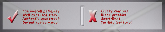 Mild Language: There are under a dozen uses of hell, d*mn, sh*t and a**, two uses of God, and one use of b*tch, SoB, God d*mn and Jesus. Also, civilian postal workers in the first level say "Jesus!" in surprise, when you come across them.