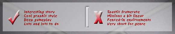Overall, Fable is an excellent game. It has a dynamic story where every one of your choices effect the story. And while the graphics aren't the most technically impressive, the art style is unique and very well done, and the gameplay is incredibly fun and borderline addictive—you won't want to stop playing till the game's end. And although the story mode is very short, there is an incredible amount of things to see, do, and collect in Fable's world; and, once you beat the game, it places you back in, letting you finish side-quests, and do as you please. However, the framerate is quite spastic, especially when there's multiple enemies on screen. And while you can often select what mission to take next, once you're in one, there's only one way to complete it. The environments that make up the world are small stand-alone paths with invisible fences and load screens between each; and for an RPG, this is painfully short (without completing all the side-quests, I beat it in 7 hours). But, despite this, it's a satisfing, fun game, and worth any RPGer's time. Last of all, The Lost Chapters itself adds some great new quests, areas, items, and 3-5 hours to the game's length.